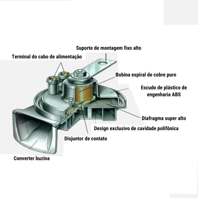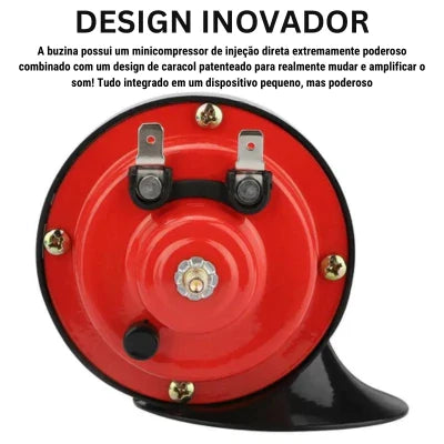 Nossa incrível buzina apresenta um compressor direto com design de caracol para gerar esse som potente! É tão compacto que metade dos nossos clientes instalam 2 para aumentar o volume! Imagine o que você pode conseguir com esse pequeno, mas poderoso, dispositivo!